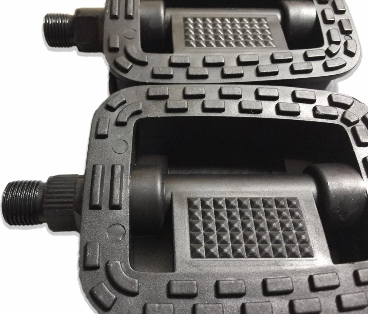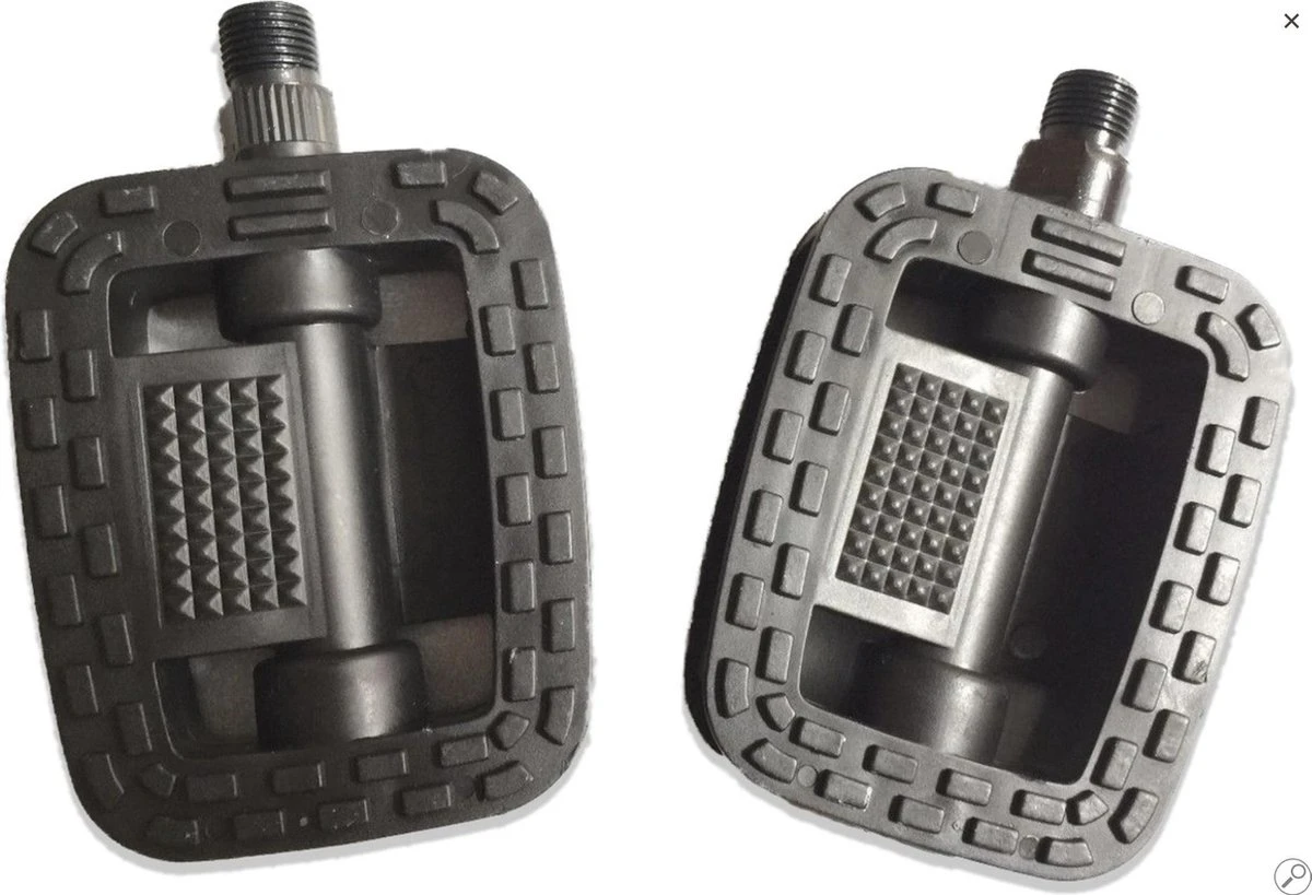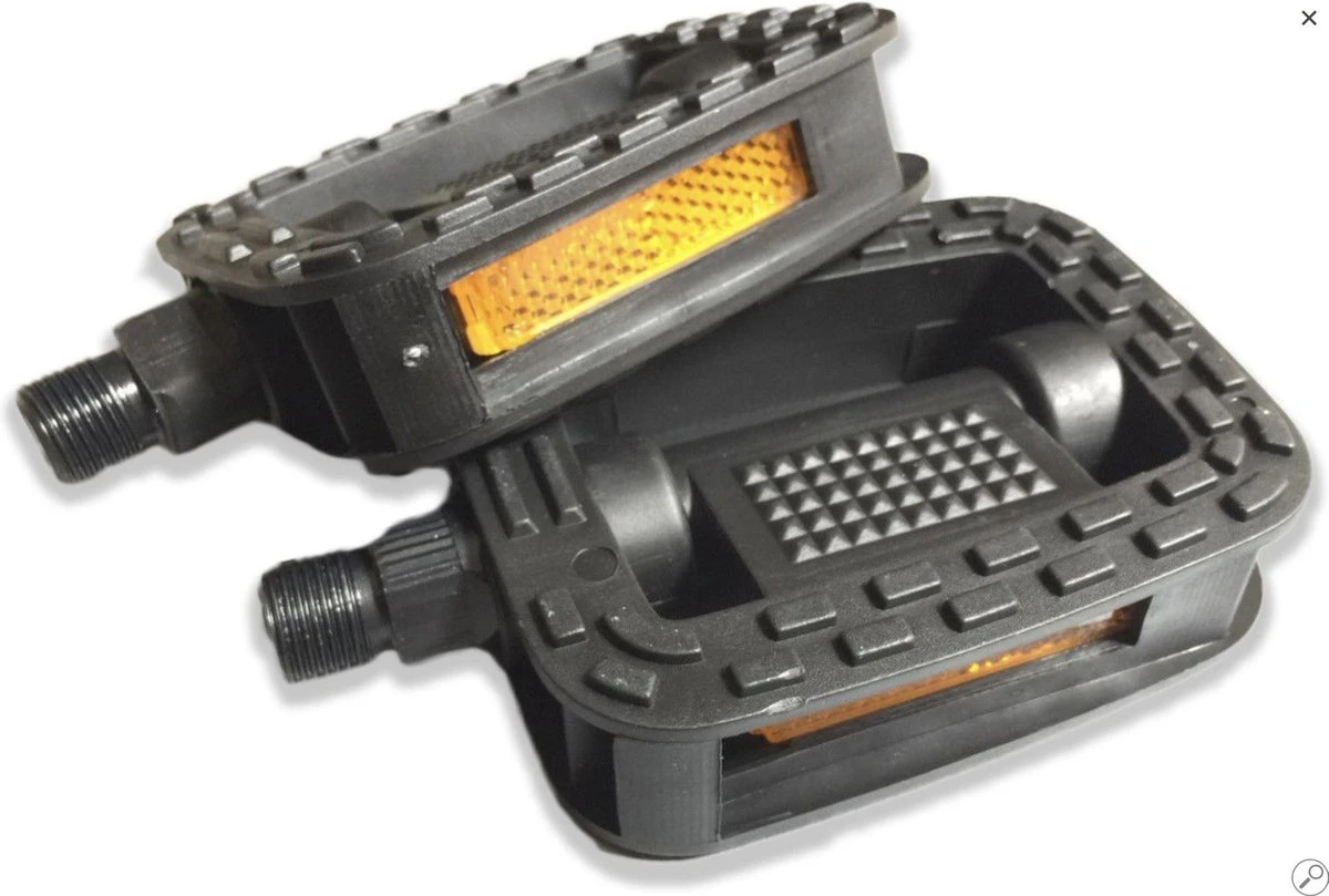 Techno Anti-Slip Pedalen met Reflectoren. Luxe uitgevoerde pedalen die het meest worden gebruikt voor tourfietsen. De pedalen zijn aan beide zijden voorzien van een antisliplaag. Deze laag geeft je onder alle omstandigheden een optimale grip. Voor een stukje extra veiligheid zijn de trappers aan voor- en achterzijde voorzien van reflectoren, wat de zichtbaarheid in het verkeer aanzienlijk vergroot. De pedalen zijn voorzien van een schroefdraad van 14.2 mm.