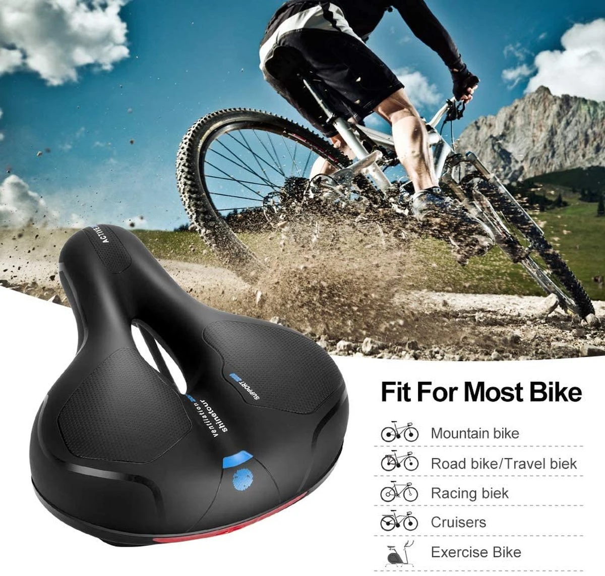 Bluebell Active Zone Blue, fijn en comfortabel fietszadel voor urenlang fietsplezier