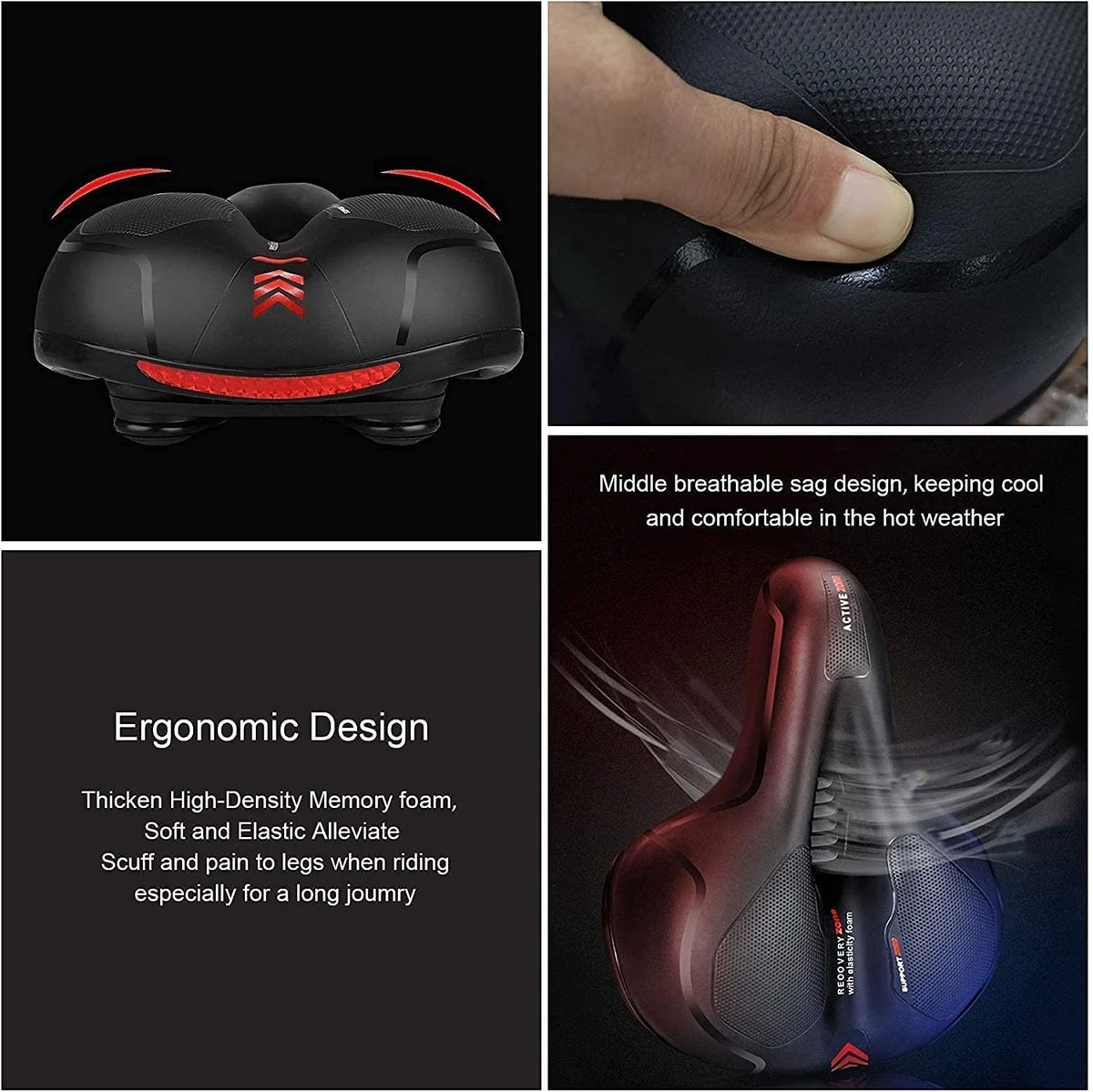 - 【Ergonomisch ontwerp】 Het comfortabele fietszitje is gemaakt van verdikt en verbreed traagschuim met hoge dichtheid. Het oppervlak van het fietszadelkussen is antislip, slijtvast PU-leer.Dubbele veerrubberen turbineophanging aan de onderkant van het fietszitje, stabiel, sterk schokabsorberend effect, betere bescherming, meer uithoudingsvermogen en flexibiliteit.