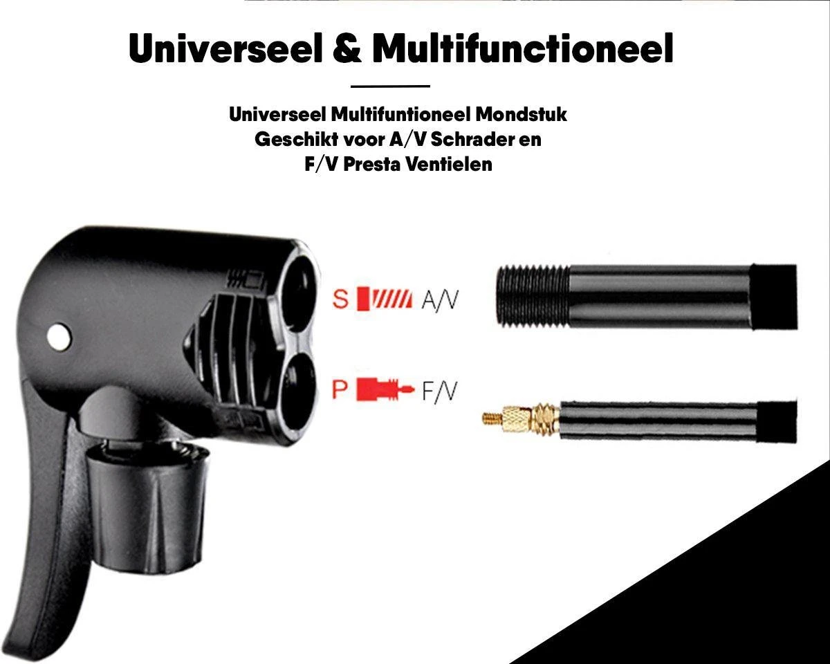 Matzwarte Fietspomp Met Drukmeter én Extra Ventielen – Multifunctioneel Mondstuk – Schrader En Presta – Aluminium Lichtgewicht Vloerpomp – Ballenpomp/ Scooterpomp/ Autobandenpomp