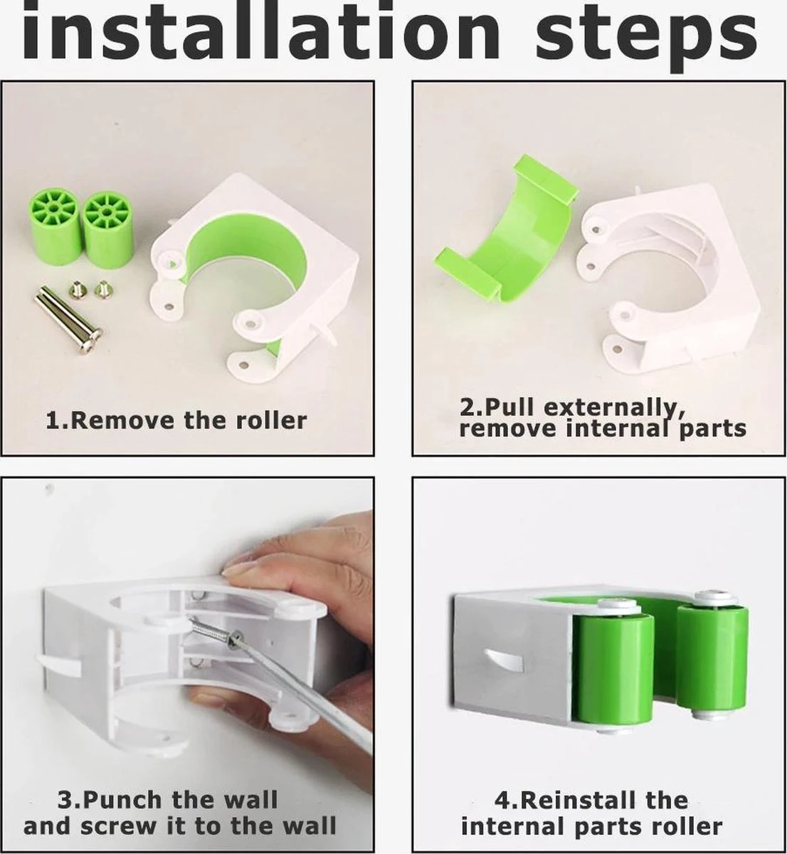 Simple installatie: geperforeerde parking rack, anti-collision siliconen, maat verstelbaar, snelle installatie. De haak is eenvoudig te installeren op elk type muur of verticale oppervlak, zonder ingewikkelde installatie stappen, gewoon compleet een paar stappen