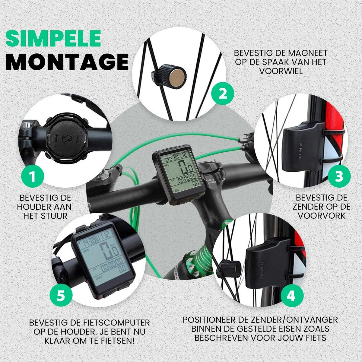 Strex Draadloze Fietscomputer – 17 Functies – Extra Groot Scherm – Draadloze Fiets Computer Draadloos Waterdicht – NL Handleiding